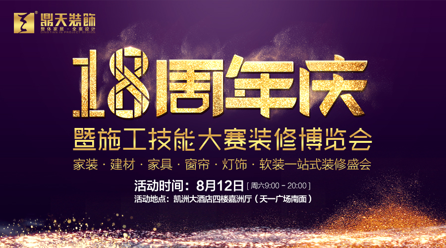 特別預(yù)告: 8月12日(周六)9:00-21:00,鼎天裝飾在凱洲大酒店四樓嘉洲廳(天一廣場(chǎng)南面)舉辦“施工技能大賽裝修博覽會(huì)暨18周年慶”活動(dòng),現(xiàn)場(chǎng)限量征集500套“18周年典藏”樣板房,悅享百萬(wàn)裝修特惠,并由鼎天至尊工作室、金牌施工團(tuán)隊(duì)聯(lián)手打造完美家裝樣板工程。現(xiàn)場(chǎng)還尊享一站式家裝建材購(gòu)齊服務(wù)。種種福利,燃爆行動(dòng)!