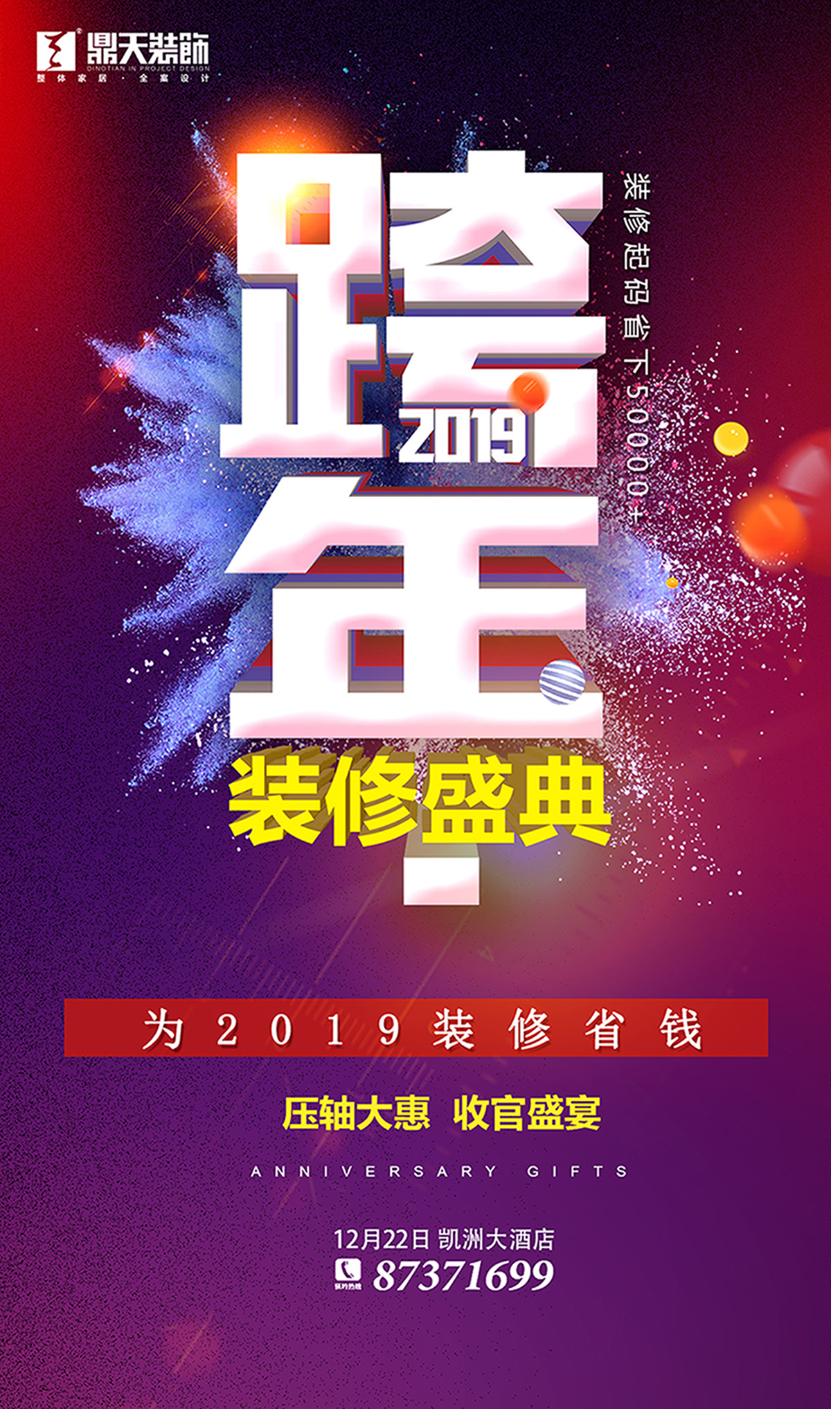 12月22日,鼎天裝飾大惠跨年 針對(duì)跨年裝修工程,鼎天裝飾會(huì)在年前把水電,木作基層、墻磚及墻、頂基層等工序處理完成,春節(jié)之后再進(jìn)行飾面等施工。這樣一來,大部分裝修材料在室內(nèi)的暴露時(shí)間會(huì)比正常情況下長(zhǎng),有利于木材中的水分揮發(fā),減少墻及木作基層變型、裂縫的可能,確保隱性工序的質(zhì)量和裝修環(huán)保。 19年來,作為寧波市第七屆十大家裝品牌企業(yè),鼎天裝飾成熟的服務(wù)和工程管理制度,能夠切實(shí)保障跨年裝修品質(zhì)。2018年,鼎天裝飾承接了東錢湖萬金雷迪森度假酒店的裝修工程,這是一個(gè)五星級(jí)酒店的施工項(xiàng)目,代表著裝修工藝和管理上的高標(biāo)準(zhǔn)和嚴(yán)要求,是榮譽(yù)和認(rèn)可。跨年裝修,是業(yè)主的滿滿信任,我們也必定感恩以待,以五星級(jí)酒店的施工標(biāo)準(zhǔn)服務(wù)于業(yè)主。 12月22日,鼎天裝飾跨年裝修博覽會(huì)在凱洲大酒店舉行,集聚雄厚的設(shè)計(jì)師和施工團(tuán)隊(duì),為您深度服務(wù)?;顒?dòng)中,活動(dòng)中,業(yè)主們可現(xiàn)場(chǎng)品鑒碧玥府、余隘人家、中梁壹號(hào)院、江灣城、銀泰城、蓮橋府、金茂悅、緹香郡、尚雅府、雅旭花苑、風(fēng)格首岸、保利印江南、奧體未來城、金地悅江來、宏泰風(fēng)花樹、公園1872、公園世家、奧萊公園、江山萬里、雅戈?duì)柮髦?、風(fēng)格尚品、紅星豐璟苑、保利城等眾多小區(qū)的裝修實(shí)例;可對(duì)接高端別墅裝修團(tuán)隊(duì),一覽整體規(guī)劃設(shè)計(jì)與施工、別墅設(shè)備、主材、家具、配飾等私屬定制于一體的服務(wù)。 確認(rèn)過眼神,這是我想要的優(yōu)惠 我們準(zhǔn)備了不少禮物,希望給您節(jié)日般地體驗(yàn)。參加跨年活動(dòng),業(yè)主可預(yù)存裝修工程款,存1萬抵2萬;現(xiàn)場(chǎng)下定,整點(diǎn)循環(huán)抽智能掃地機(jī)器人、品牌冰箱、洗衣機(jī)、液晶電視等實(shí)用家電;還能砸金蛋贏工程現(xiàn)金款、燈具、地板等大獎(jiǎng)?,F(xiàn)場(chǎng)還有一眾品牌建材,聯(lián)袂年底收官讓利。百萬元裝修特惠,年末獨(dú)享。 此外,鼎天裝飾家具板塊,還有送萬元整體家居、軟裝現(xiàn)金抵用款;裝修總價(jià)達(dá)標(biāo),送窗簾、送墻紙、送方太廚電等諸多優(yōu)惠。 下定跨年裝修,業(yè)主也將不用憂慮來年原材料上漲、人工成本增加等引起的裝修漲價(jià),鼎天裝飾將為您保價(jià);新房交付的業(yè)主,還將免費(fèi)享受驗(yàn)房、量房等服務(wù)。 整體家裝,免去一切繁瑣 結(jié)合優(yōu)秀的項(xiàng)目經(jīng)理和經(jīng)驗(yàn)豐富的設(shè)計(jì)師,先一步為業(yè)主挑選優(yōu)質(zhì)的建材,整合打造精致而實(shí)惠的整裝產(chǎn)品,這就是鼎天裝飾美艷1號(hào)、美艷5號(hào)、美艷8號(hào)、美艷999,及“科技美宅”美艷9號(hào)等整裝系列套餐的由來。整體家居模式讓裝修變得更加簡(jiǎn)便,更比常規(guī)裝修要節(jié)省費(fèi)用。美艷套餐已成為都市白領(lǐng)、經(jīng)典婚房、大平層及改善型業(yè)主裝修的重要選項(xiàng)。鼎天裝飾還是首批浙江省住宅全裝修產(chǎn)業(yè)鏈?zhǔn)痉镀髽I(yè),參與裝修了金茂府、萬科歡樂海岸、萬科東望、華貿(mào)悅峰、金盛金磐等高端精裝修樓盤。 2018年,鼎天裝飾又把家具、軟飾產(chǎn)品加入了自己的整體家居服務(wù)選項(xiàng),如旗下的佰麗家居美學(xué)體驗(yàn)館,提供整體家具、軟裝定制等服務(wù),實(shí)現(xiàn)硬裝、軟裝無縫銜接,給予客戶更貼合的居家享受。 在精裝房越發(fā)普及的當(dāng)下,鼎天針對(duì)性的微改造服務(wù),精裝房業(yè)主們很有必要到活動(dòng)現(xiàn)場(chǎng)了解一番。