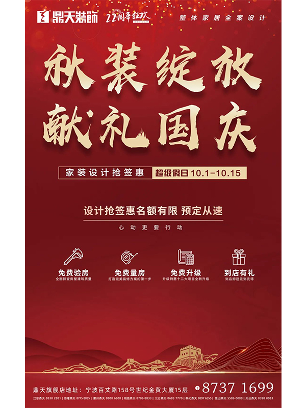 ?? 10月1日—10月15日鼎天超級假日《秋裝綻放·獻(xiàn)禮國慶》活動熱烈,開啟千萬鉅惠●各種好禮等您來領(lǐng)詳情請咨詢以下各門店