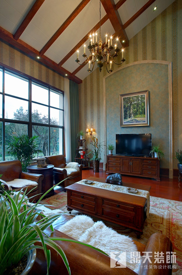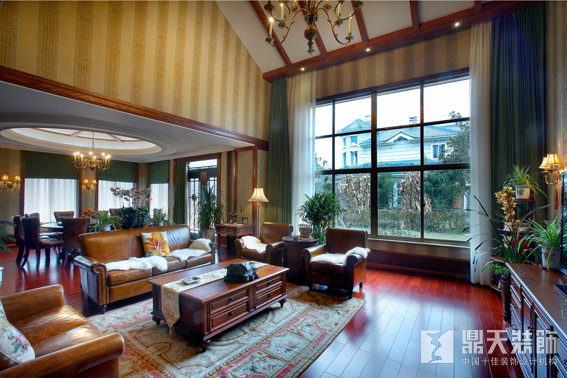 洋房,本是中國(guó)人對(duì)具有歐美風(fēng)格的別墅的總稱,但在我們的印象中,卻常常呈現(xiàn)老上海十里洋場(chǎng)的花園洋房畫面,那種沉淀歲月,不改風(fēng)情的氣質(zhì)和氛圍。這套作品,雖然沒(méi)有傳統(tǒng)印象中的青磚配圓拱的表象,但內(nèi)涵的氣度氛圍,卻承襲了花園洋房一貫的中西交融。木色深深,蘭花碧翠,書香墨韻,銅燈金粉……所謂中西合璧,氣韻相通便是這樣。更何況該屋舍建筑本身便是一套歐美風(fēng)格的別墅,而室內(nèi)設(shè)計(jì)中除了藝術(shù)花燈、壁紙、皮制沙發(fā)、美式家具的使用外,還采用了大量的中式裝飾元素,例如書畫和內(nèi)蘊(yùn)中國(guó)傳統(tǒng)審美的綠色植物,這使得整個(gè)空間更貼近業(yè)主的精神世界,洋房的文化價(jià)值和室內(nèi)設(shè)計(jì)的使用需求由此實(shí)現(xiàn)。