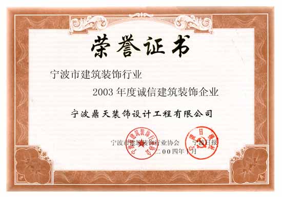 2003年度誠(chéng)信建筑裝飾企業(yè)